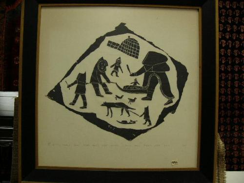 CHOICE of 2 stone cuts done in 1962, signed: family traveling without dogs (180)