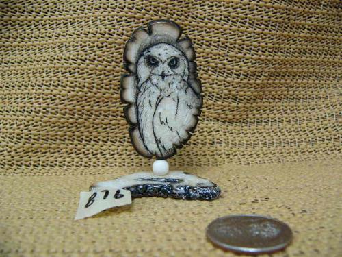 CHOICE on 2 - 3" fossilized walrus ivory scrimshawed platchets: snowy owl by Homer Cole (2)