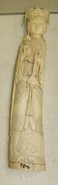 CHOICE on 2: Elephant ivory oriental figures, very old, with some damage, 17" tall, 3" wide, female (33)