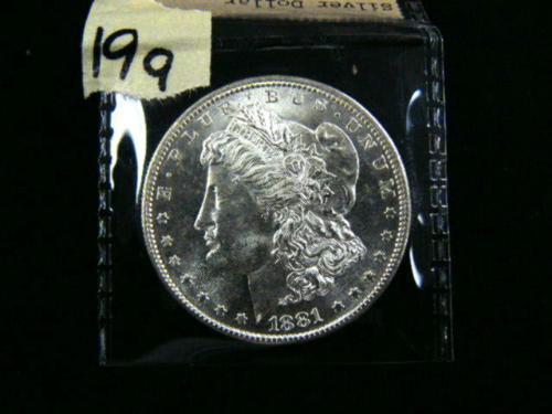CHOICE on 2 Morgan silver dollars 1881 - S, mint state 63 plus, gem un-circulated (194)