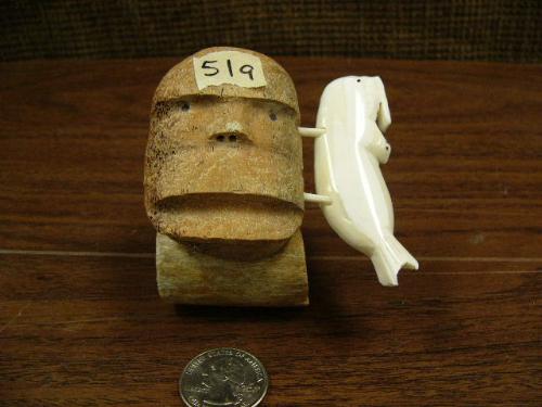 CHOICE on 2 bone masks and ivory walrus on bone base by Mark Seeganna (2)