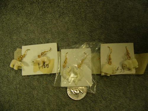 CHOICE on 2 sets of 3 pairs of ivory earrings: 1 pair of musk ox, 1 pair of Orcas, 1 pair of bears