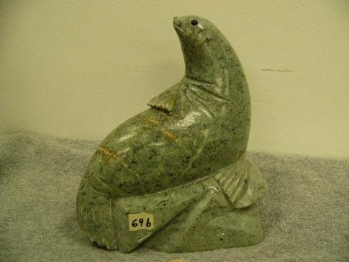 CHOICE on 2: soapstone seal with marble eyes by E.S. 7.5" tall (33)