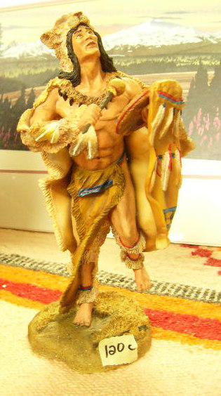 CHOICE on 3 Cast Native American Figurines: Spirit of the Mountain Lion - Native American holding a Mountain Lion hide, Hamilton Collection, 10 inches tall (2)