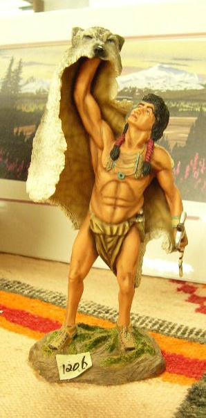 CHOICE on 3 Cast Native American Figurines: Wolf Scout - Native American holding a wolf hide, Hamilton Collection, 10 inches tall (2)