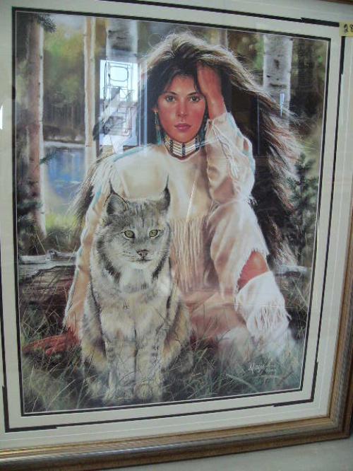 CHOICE on 3 Maija: Double matted and framed in silver 165/950 Indian girl with Bobcat (23)