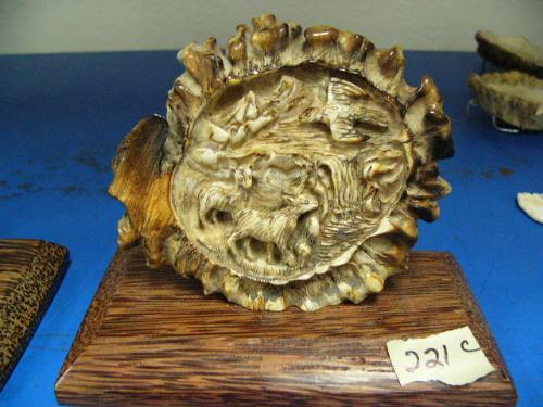 CHOICE on 3 elk antler butt carvings: 2 deer and bird ()