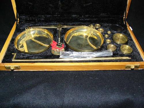 CHOICE on 3 gold scales: in wood case up to 100gm (154)