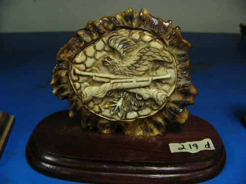 CHOICE on 4 elk antler butt carvings: eagle and 2 rifles ()