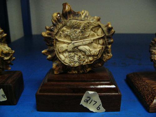 CHOICE on 4 elk antler butt carvings: eagle with 2 guns ()