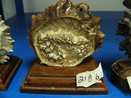 CHOICE on 4 elk antler butt carvings: mountain scene with 3 deer and bird ()