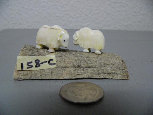 CHOICE on: 5 Ivory Musk ox by Robert Kokuluk mounted on old Whalebone (2)