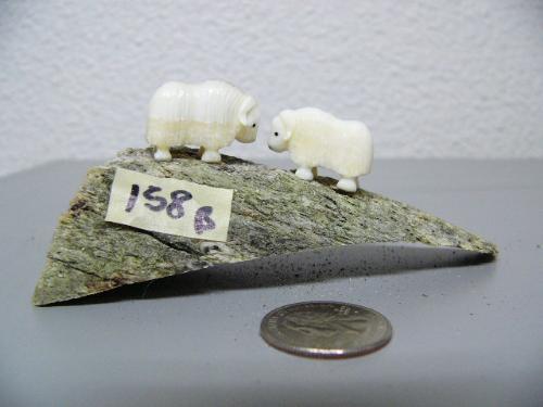 CHOICE on: 5 Ivory Muskox by Robert Kokuluk mounted on old Whalebone (2)
