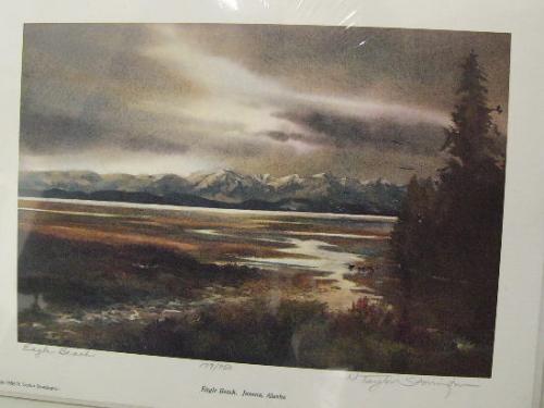 CHOICE on 6 prints: 2 prints- Scott McDaniels campsite on the river 424 of 550; Nancy Taylor Stonington "Eagle Beach, Juneau Alaska" done in 1984- 7-1/2" x 11" (2)