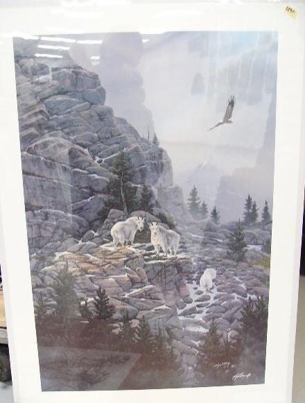 CHOICE on 6: signed and numbered print by Kelley done in 1989 of 3 goats and eagle- 30x20 (2)