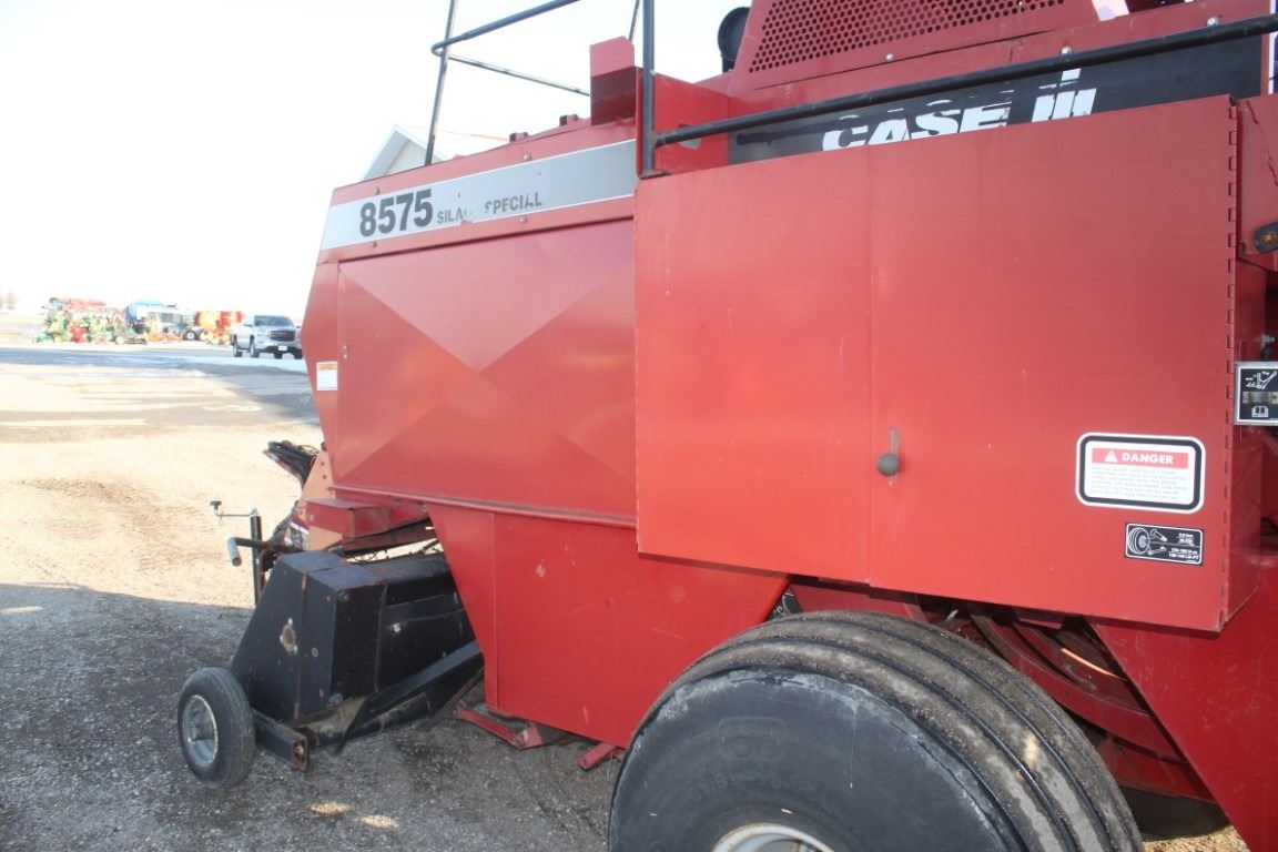 CIH 8575 large square baler with accumulator, Silage Special, 3x3 baler, 91 inch pickup width, Hydraulic pickup lift, 21.5L-16.1 high flotation tires, Hydraulic bale tension, Monitor, approximately 84,000 bales