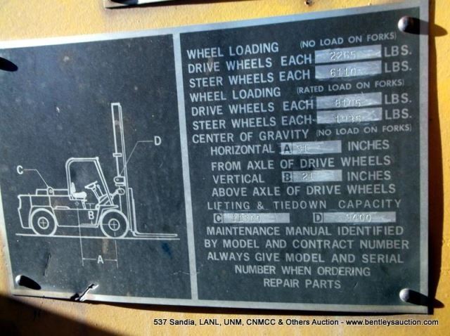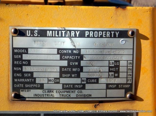 CLARK MODEL 2348144 FORKLIFT, 1,293 HOURS, 15,000 LB CAPACITY W/ SCALE, S/N # 2348144EI98 (PS) 4256
