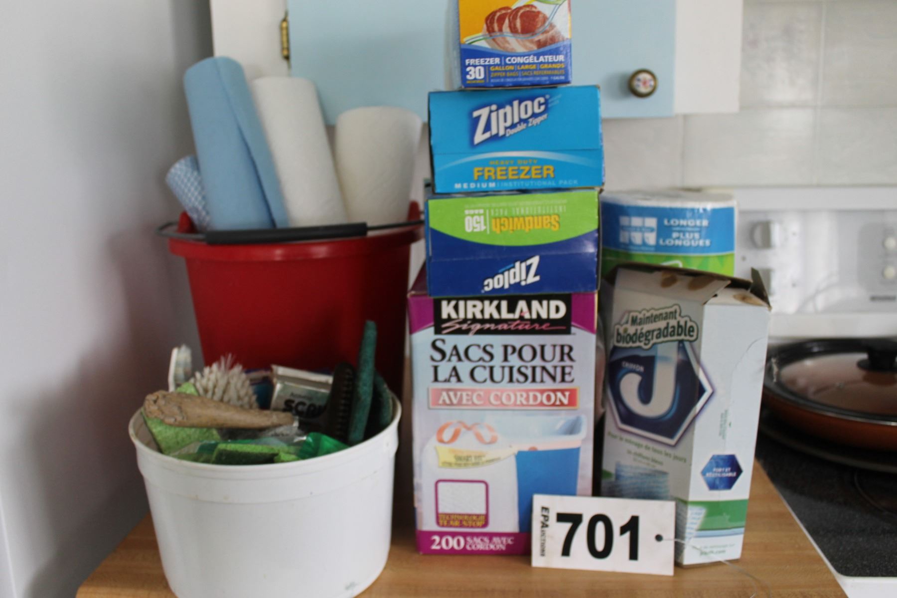CLEANING SUPPLIES, PAILS, ZIPLOC BAGS, ETC