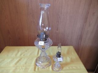 CLEAR GLASS OIL LAMP & MINI OIL LAMP WITH CHIMNEYS