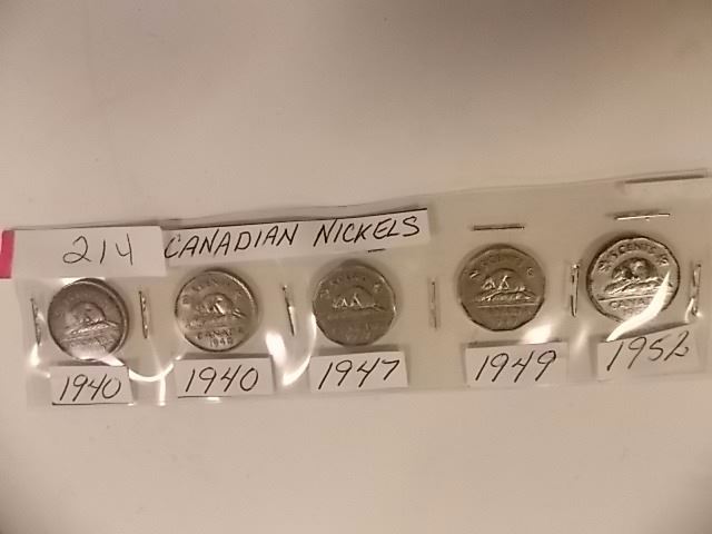 COINS - CANADAIN NICKLES - 1940(2), 1946, 1949, 1950, 1952 = 6TTL