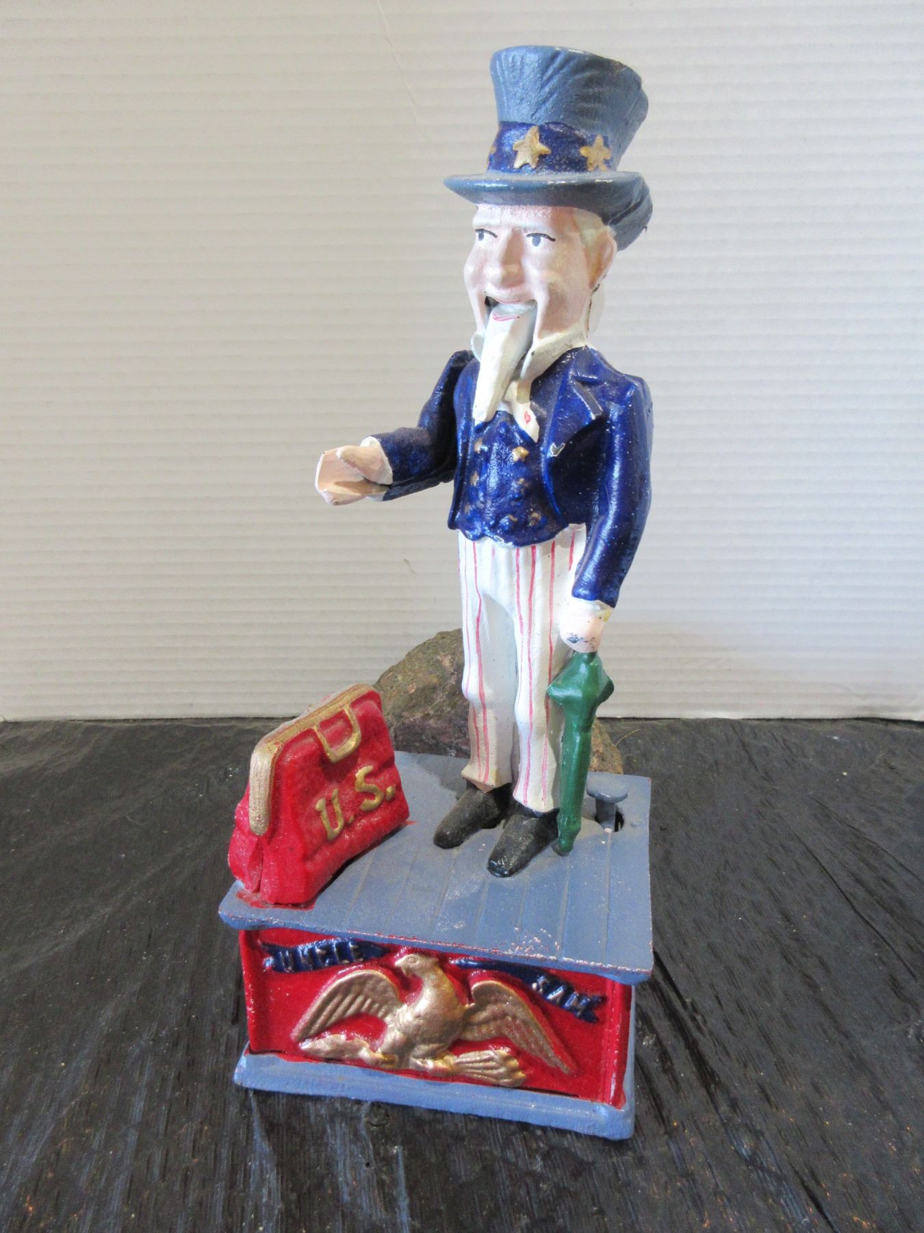 COLLECTABLE: UNCLE SAM CAST IRON BANK (APPROX. 7"H)