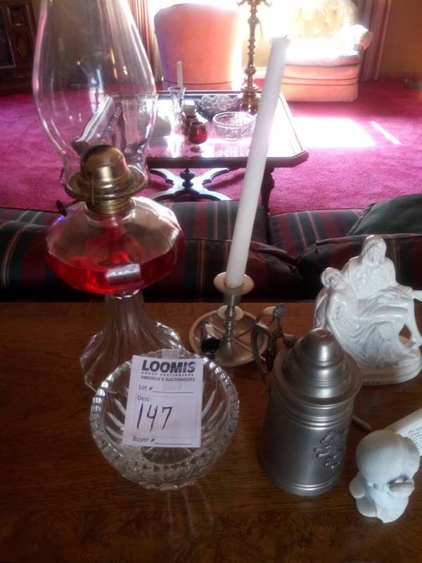 Pewter Stein, Candle Holder, Crystal Type Bowl.