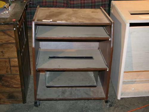 COMPUTER TABLE WITH PULL OUT DESK TOP ON ROLLERS DARK WOOD, 29"X27"X23"