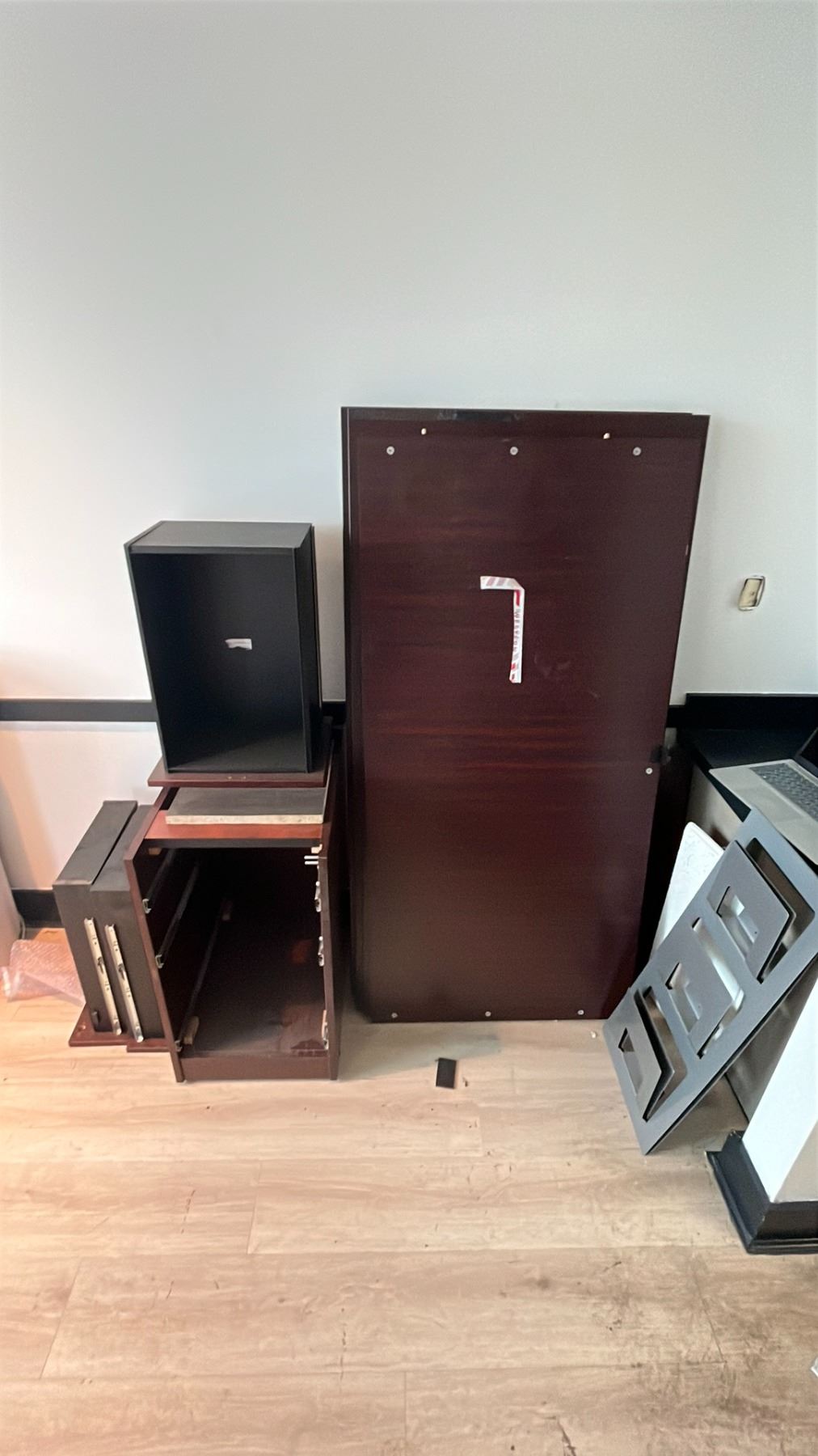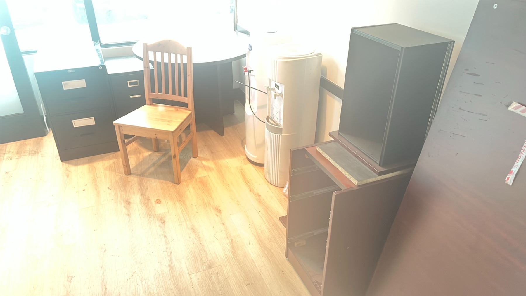 CONTENTS OF OFFICE - DIS-ASSEMBLED DESK, ROUND TABLE, (2) WATER COOLERS, WOODEN CHAIR AND