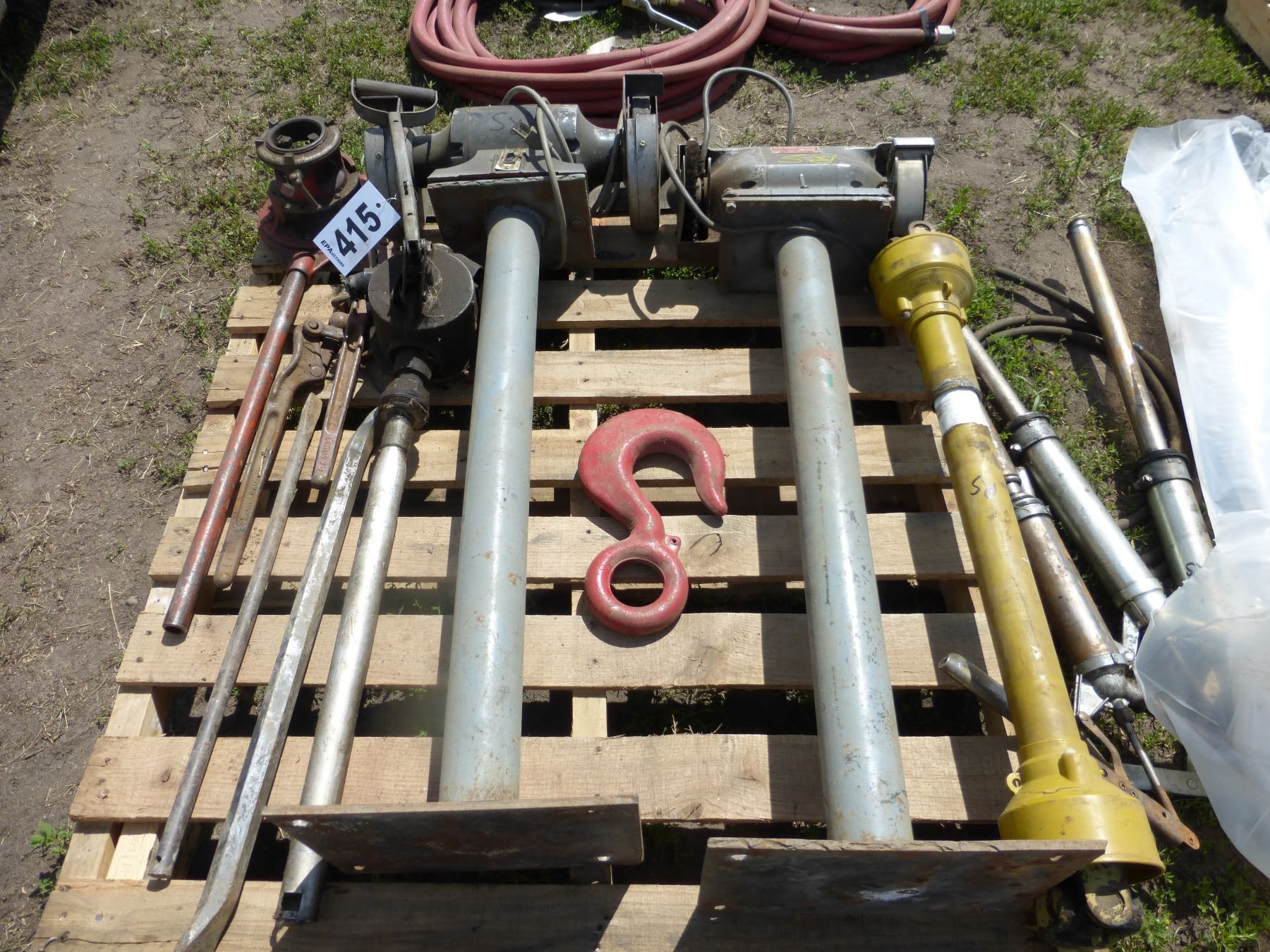 2 BENCH GRINDERS, BARREL PUMP, RIGID THREADER, HYDRAULIC RAM