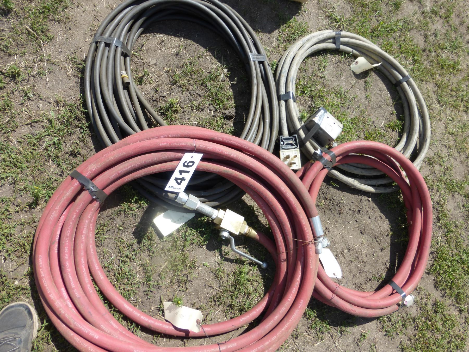 AIR & ELECTRICAL CORDS (4) & BOX OF ELECTRICAL SUPPLIES