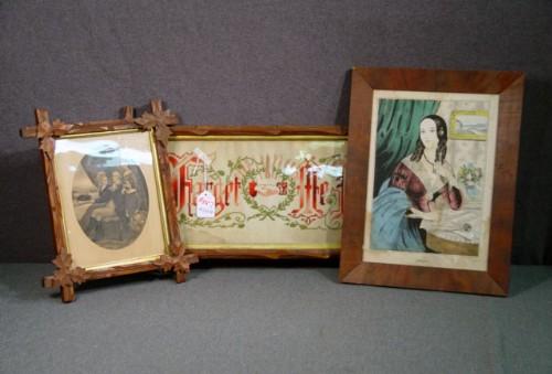 CURRIER PRINT "JULIA," FRAMED MOTTO, AND WASHINGTON FAMILY PRINT- 3 X THE MONEY