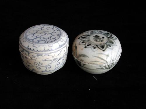 CYLINDRICAL UNDERGLAZED BLUE & WHITE BOXES, FLORAL