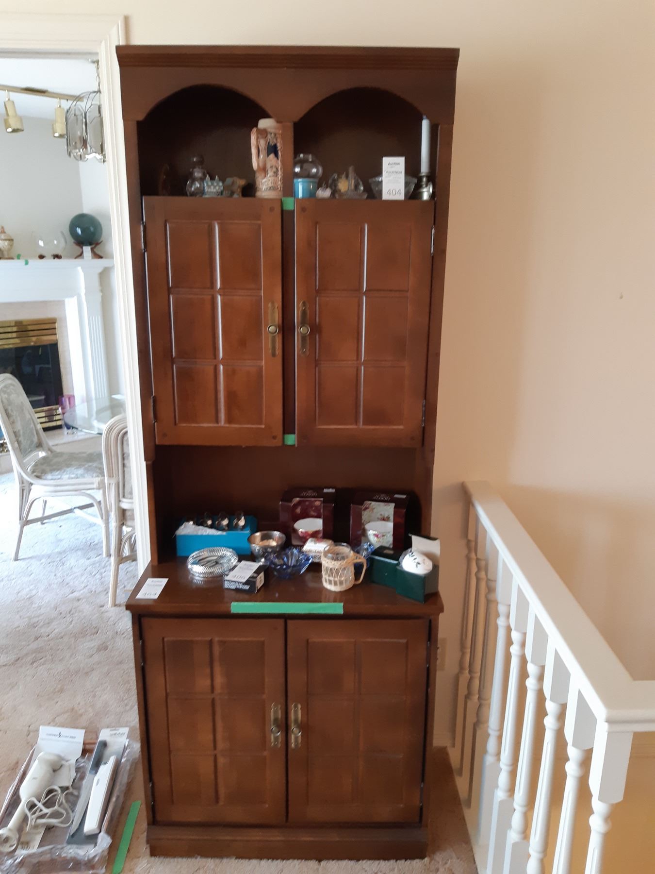 Wood cabinet 29x16x77 note scratches Pickup at 11 am
