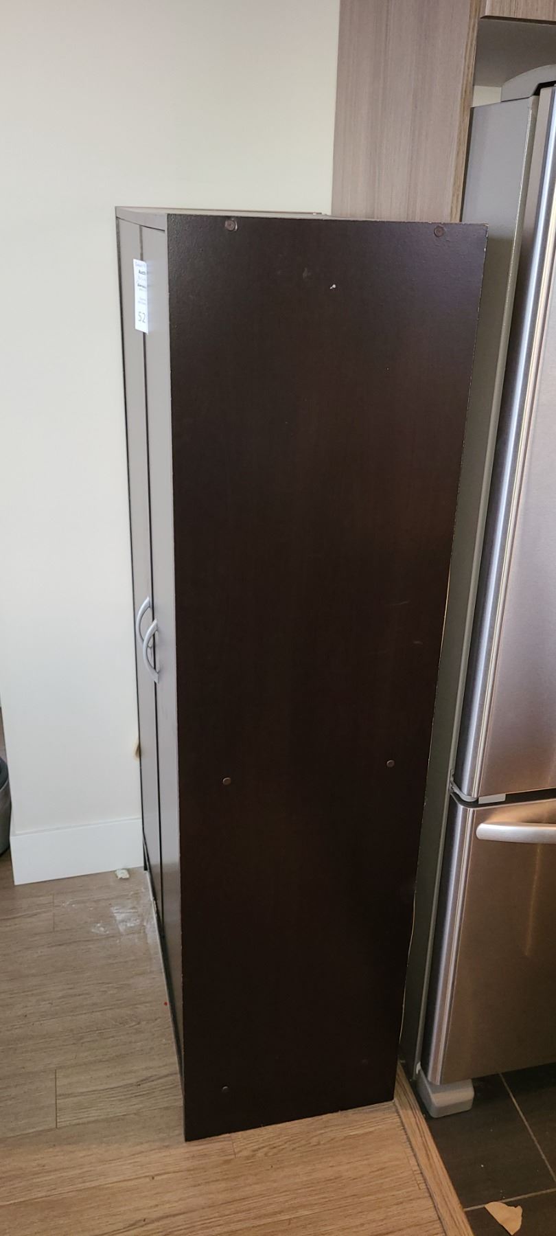 36x16x60 cabinet only, contents not included. Bring help to remove and pickup at 11 am