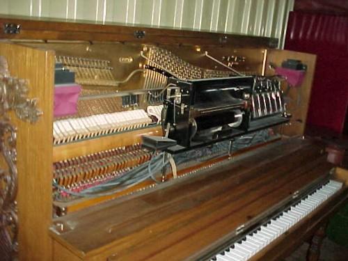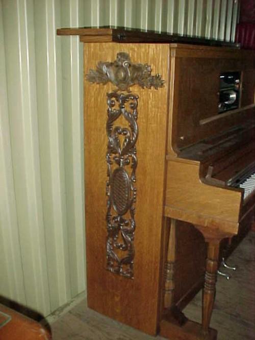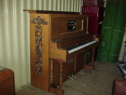 Oak Player piano. The Cable Co.- Chicago. Euphona player mechanism. Ser# 198787. Carved plexiglass front cover, carved applied moldings.