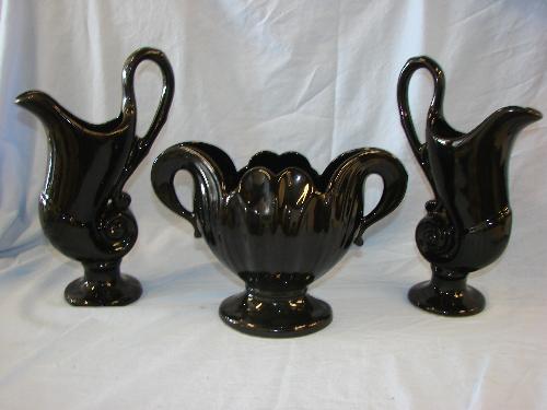 Camark black Urn & pitchers (note: chips on one pitcher)