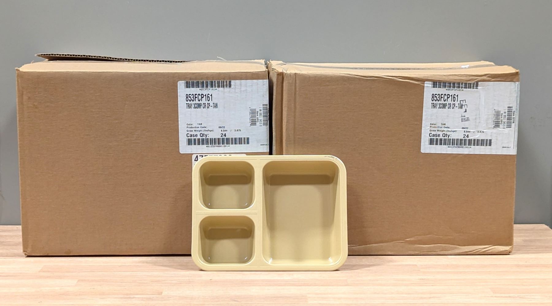 Cambro Plastic Rectangular Tray 3 Compartments,853FCP161 - Lot of 48 ( 2 Cases)| L4-1