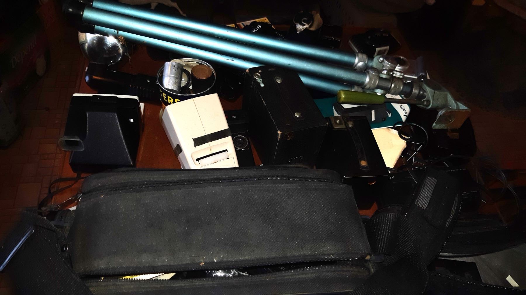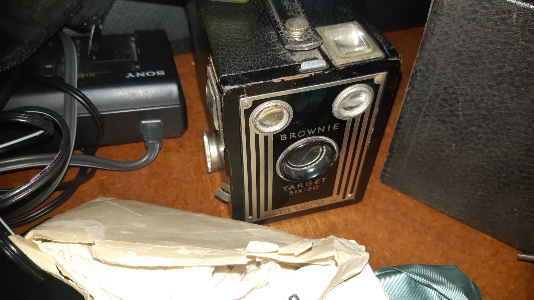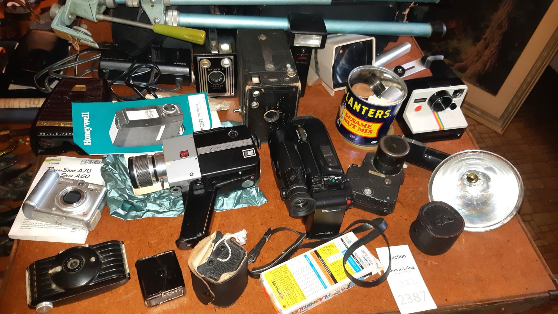 Collection of video, still cameras, super 8 mm, Canon PowerShot, vintage Brownie, tripod, more. Pick up 9-10