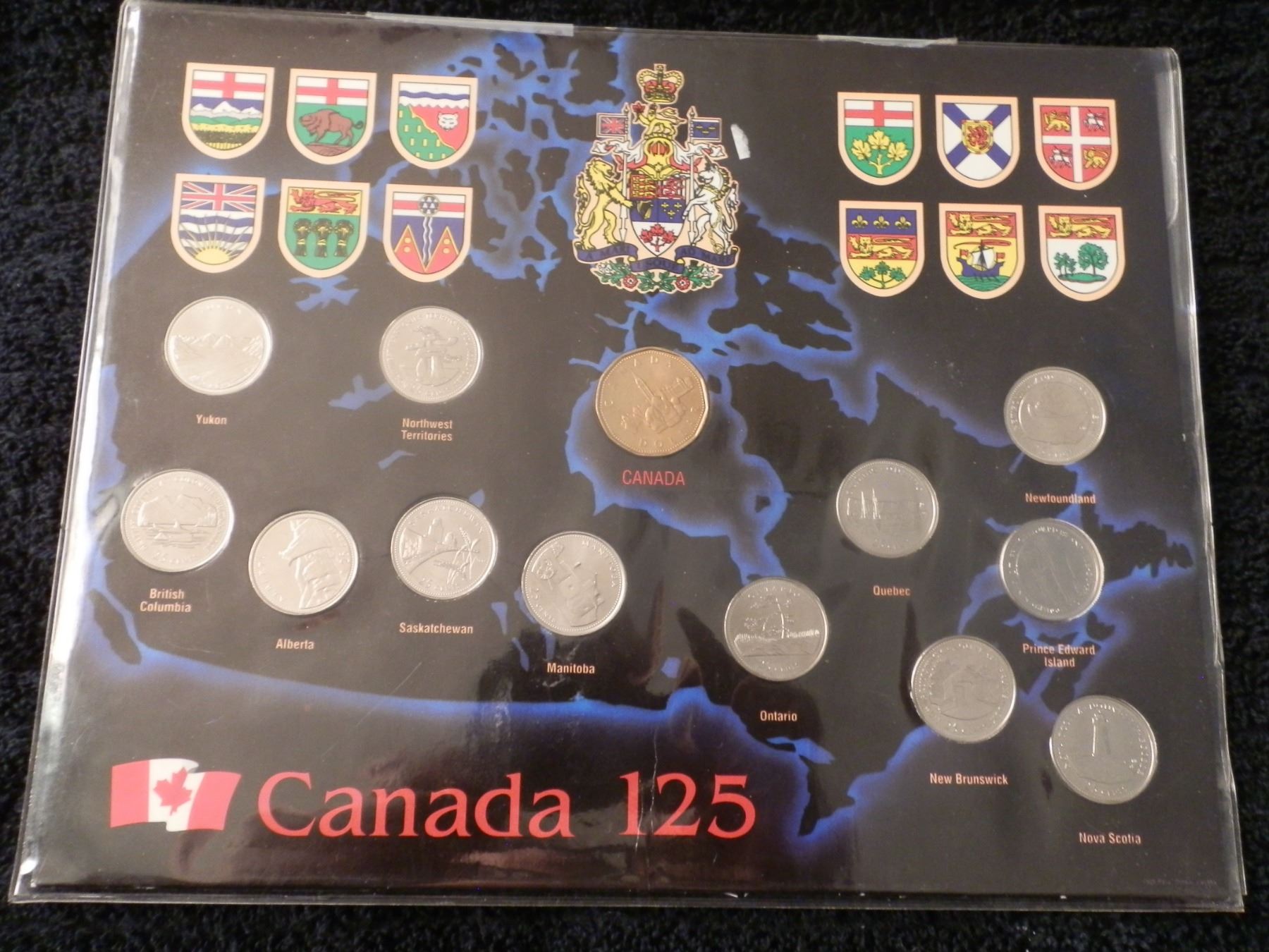 Canada 125 Canadian set, all 10 provinces and the 2 territories at that time, also comes with the loonie.. in a case