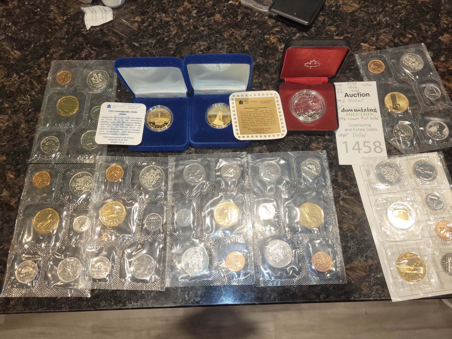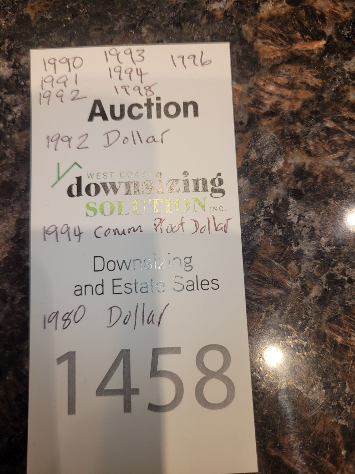 1990, 91,92, 93, 94, 96 & 98. (7). 1992 Dollar, 1994 Proof Dollar, 1980 Dollar. Pickup at 9 am