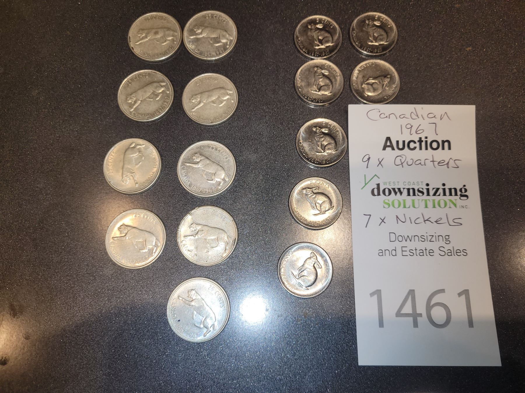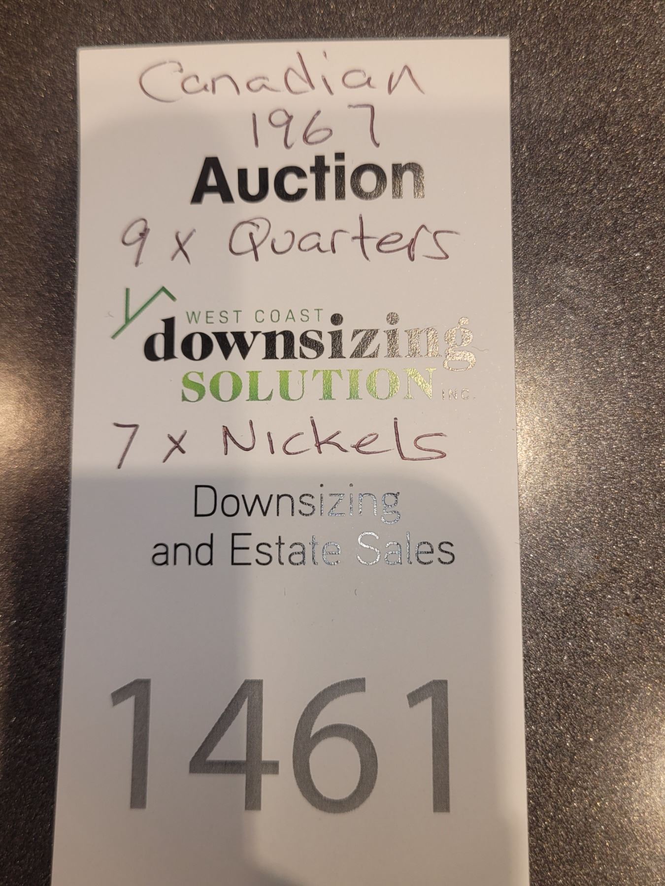 1967, 9 x Quarters, 7 x Nickles. Pickup at 9 am