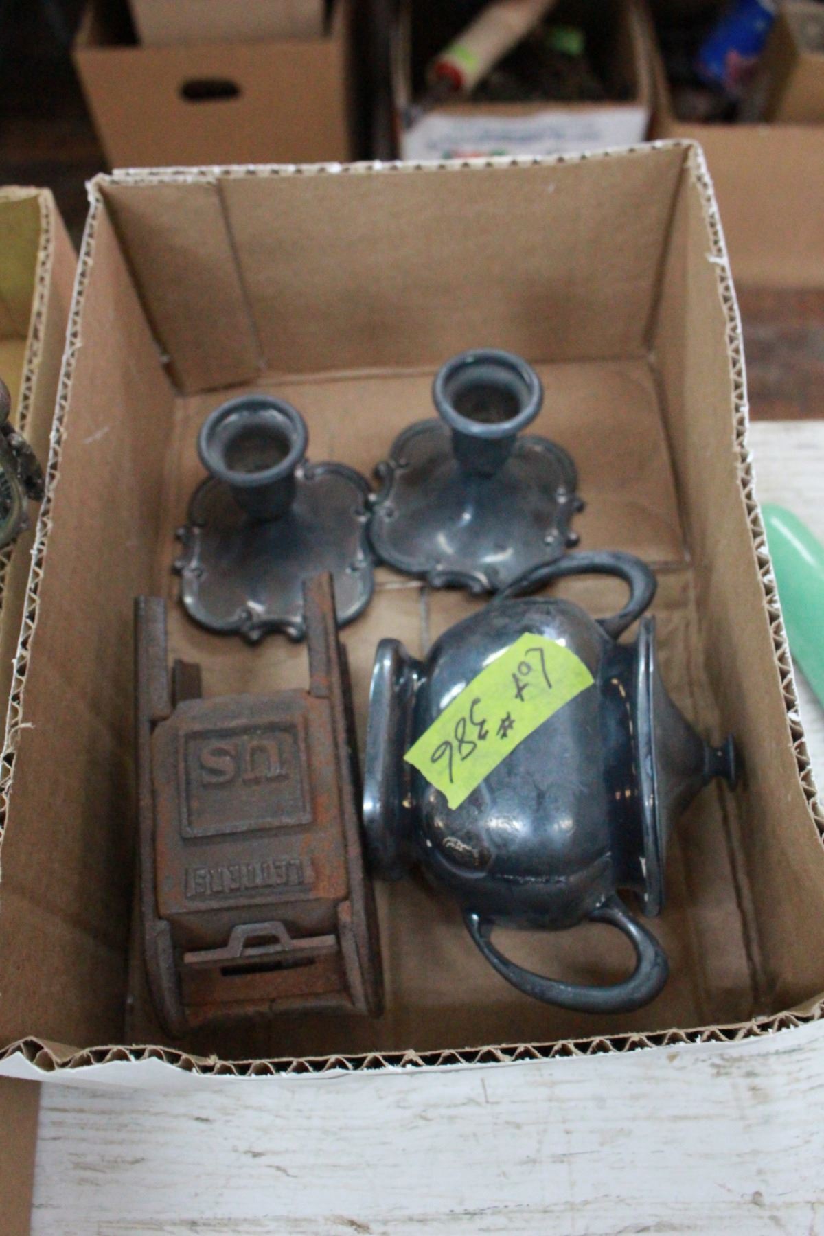 Silver Sugar Bowl; Silver Plate Candle Holders &Cast Miniature Mail Box; U.S.