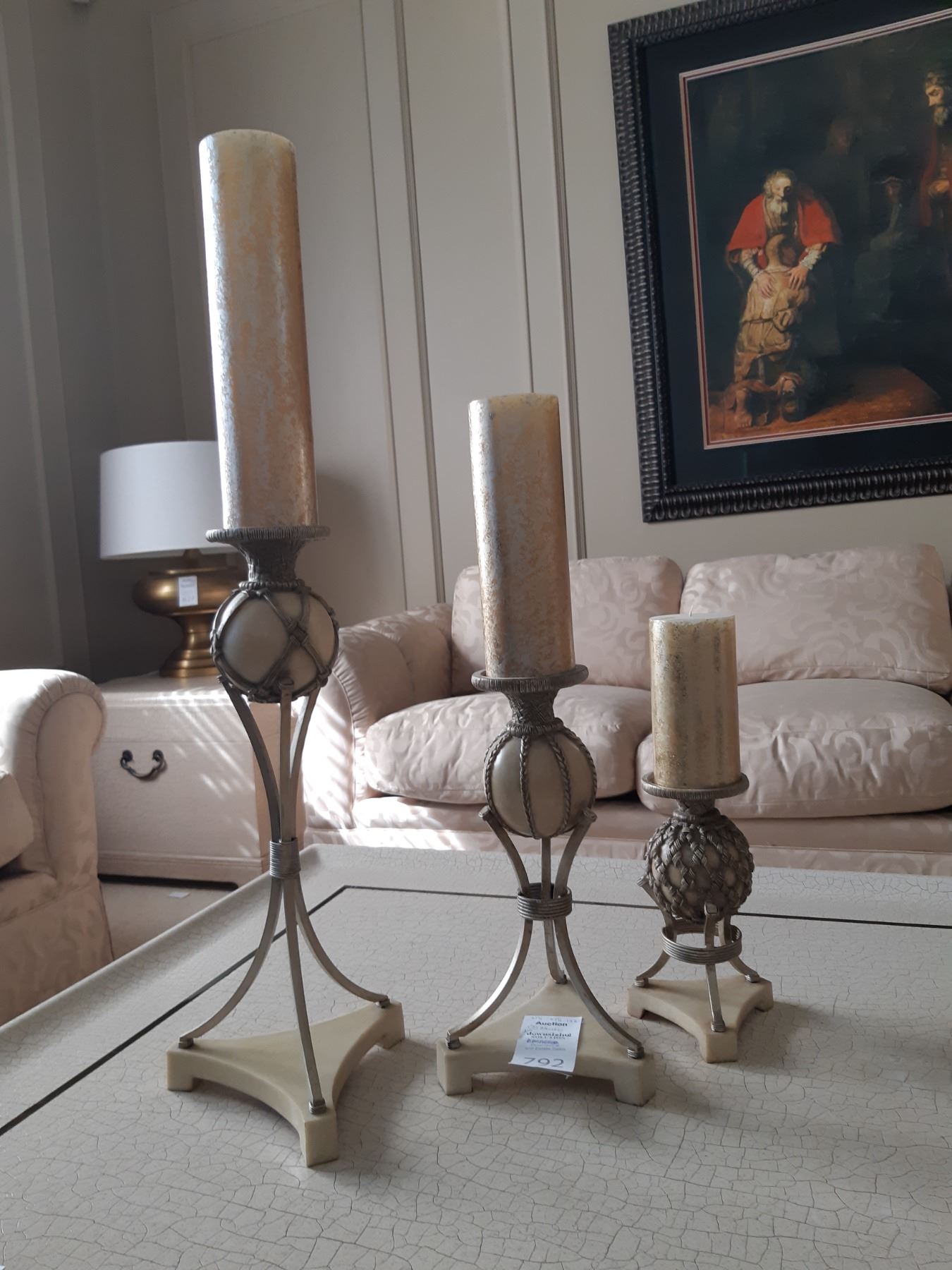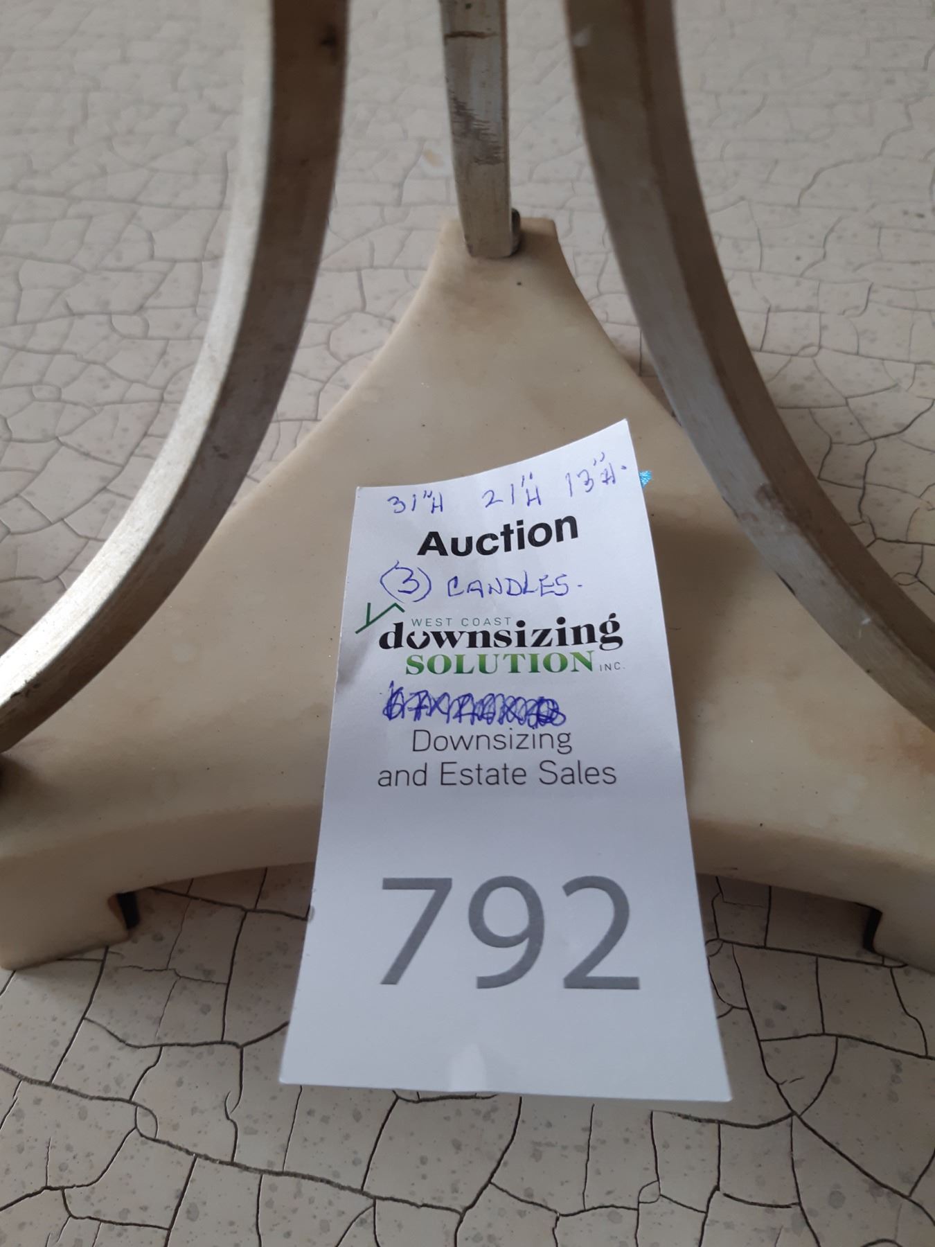 3 candel holders largest 31high, pickup 9 am