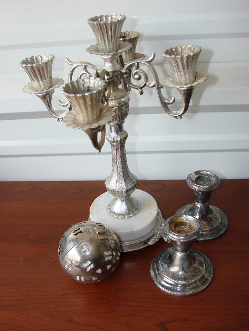 Candleholders & Silver potpourri ball