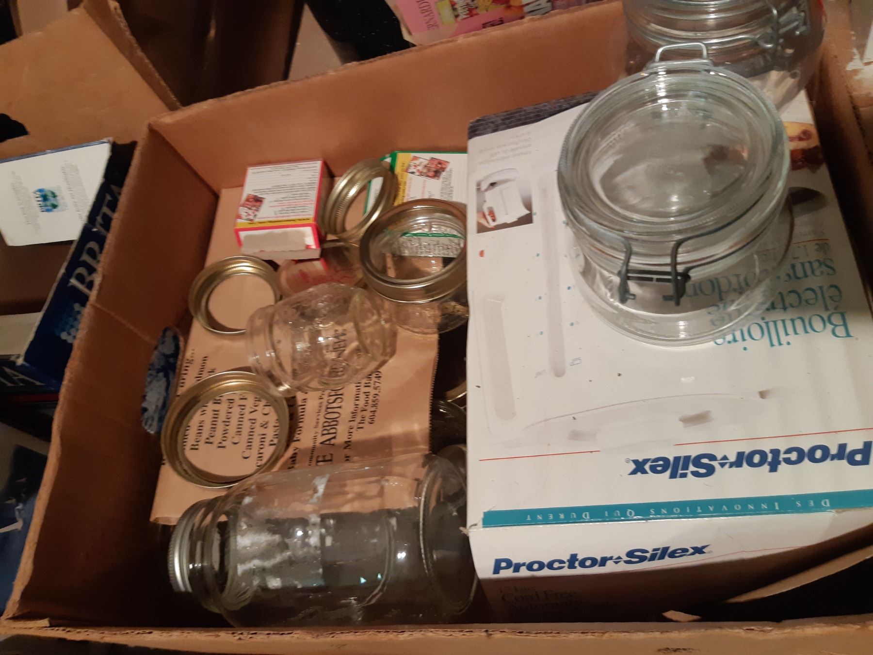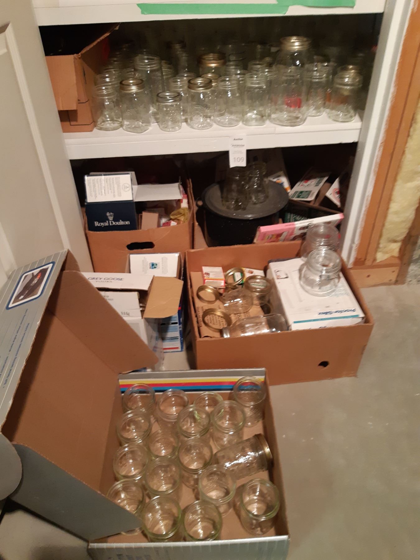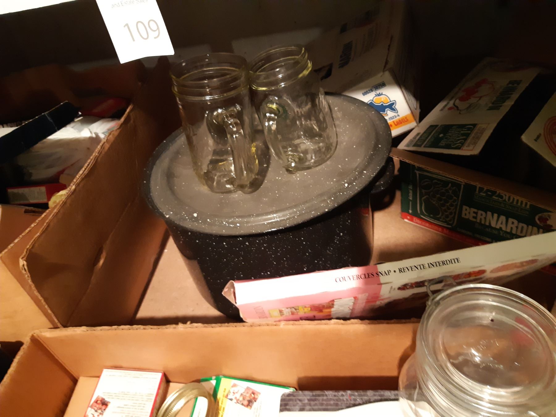 Large amount of glass canning jars in various sizes. Granite canner and more. Bring packing and pickup at 10 am