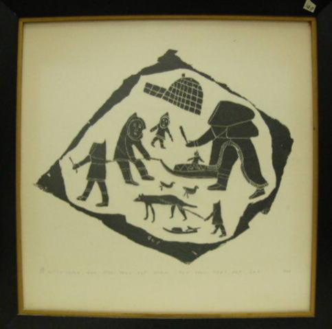 Cape Dorset print # 25/25 dated 1962, framed - image size 20"x20" (2)