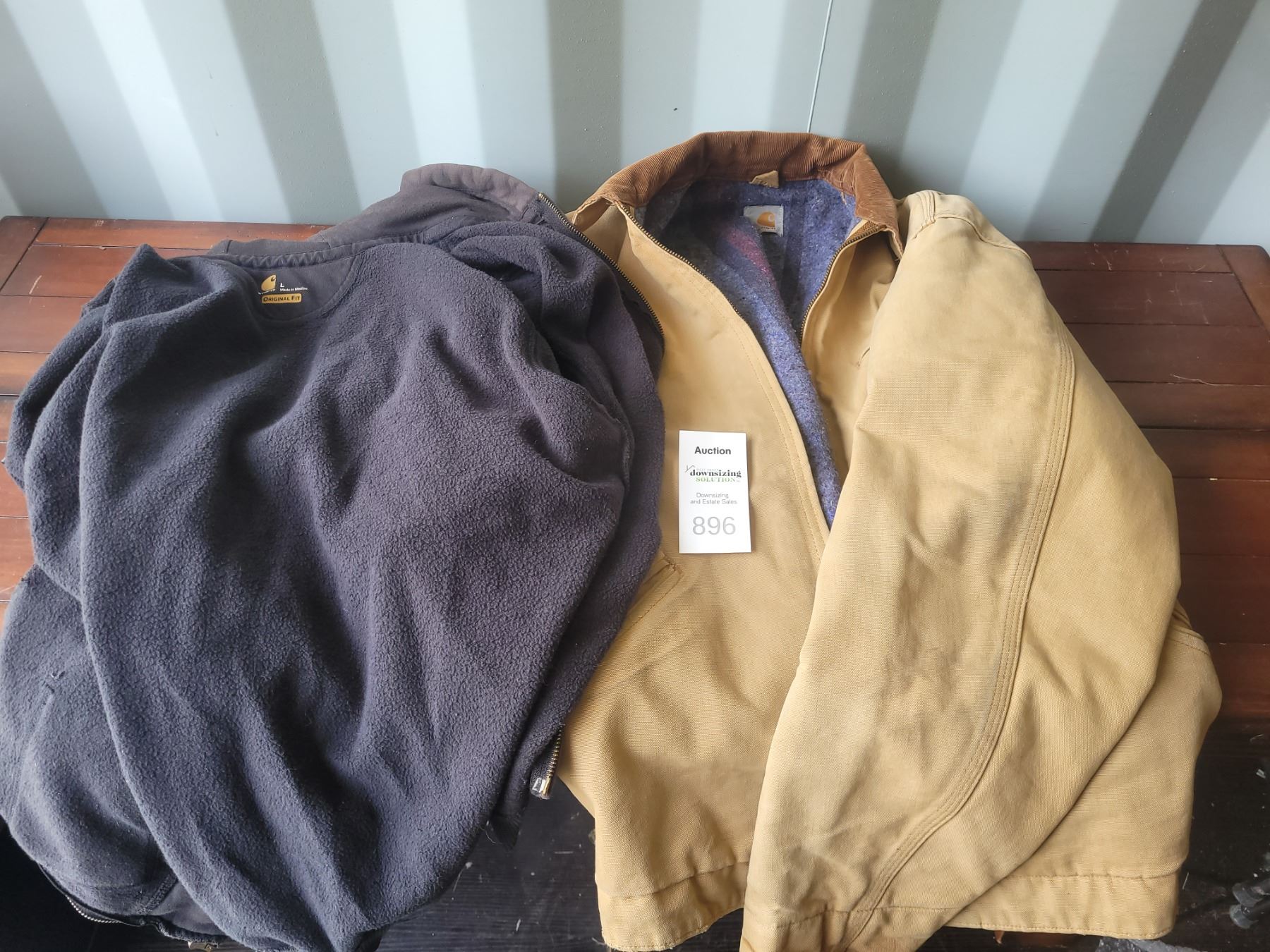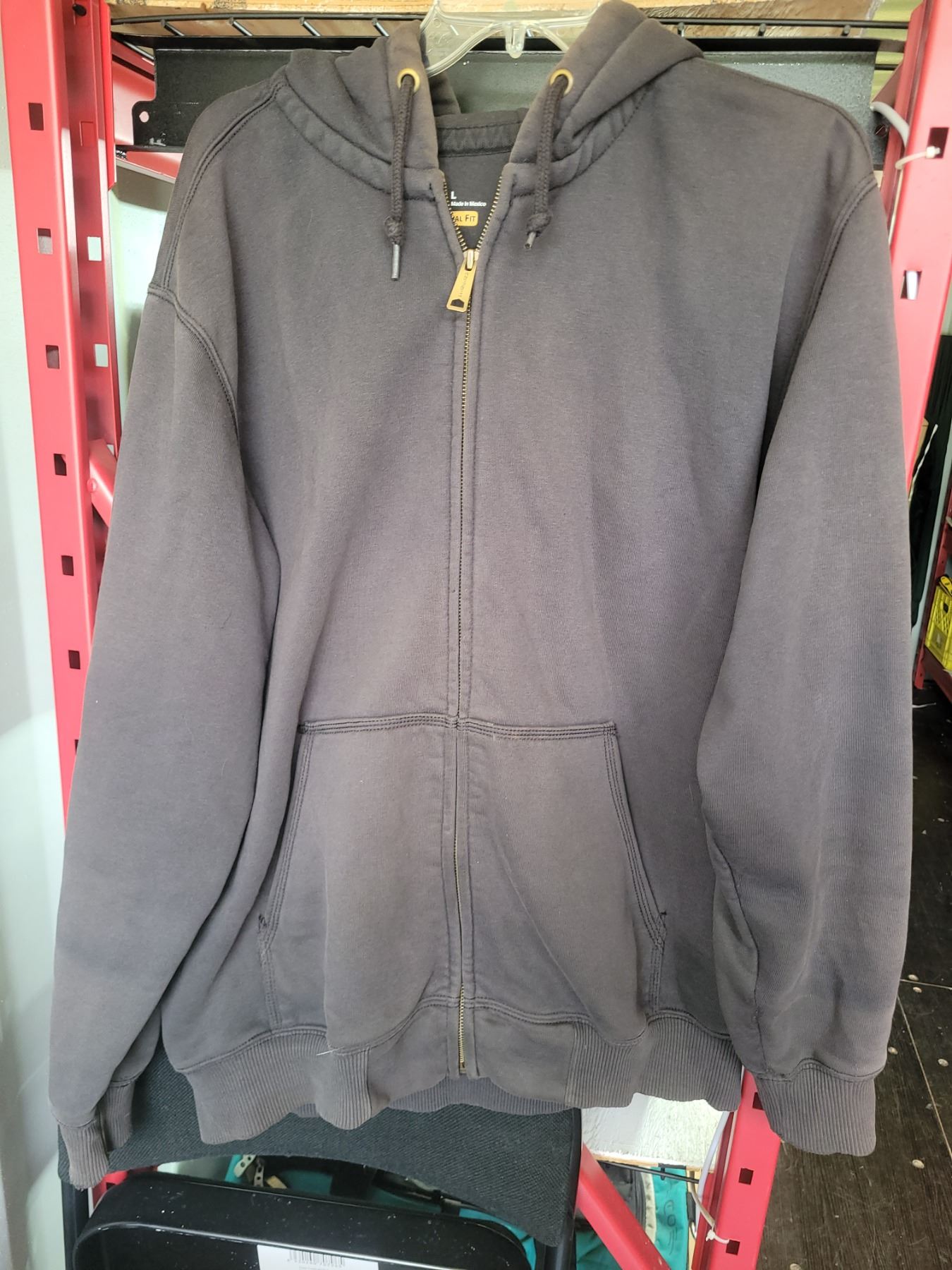 Size large men's work jacket and hoodie. Pickup at 19 am