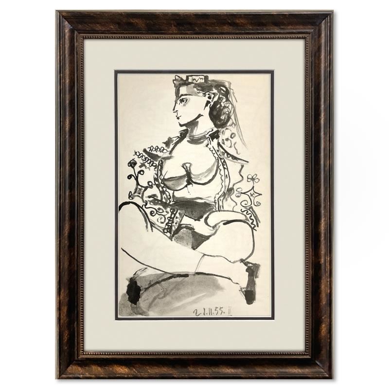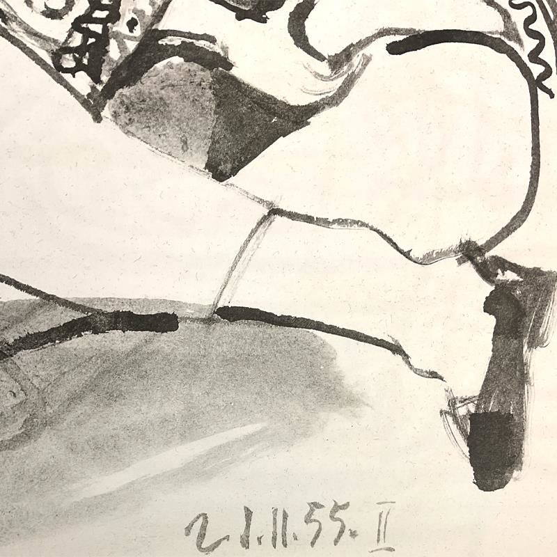 "Carnet de Californie 21.11.55-II" is a vintage lithograph on paper by Pablo Picasso (1881-1973). This piece is from Picassos Carnet de Californie Series and was printed in Paris France by Mourlot Studios in 1959. This piece comes framed. Includes Letter of Authenticity. Measures approx. 24.5" x 18.5" (frame) 16.5" x 10.5" (image).