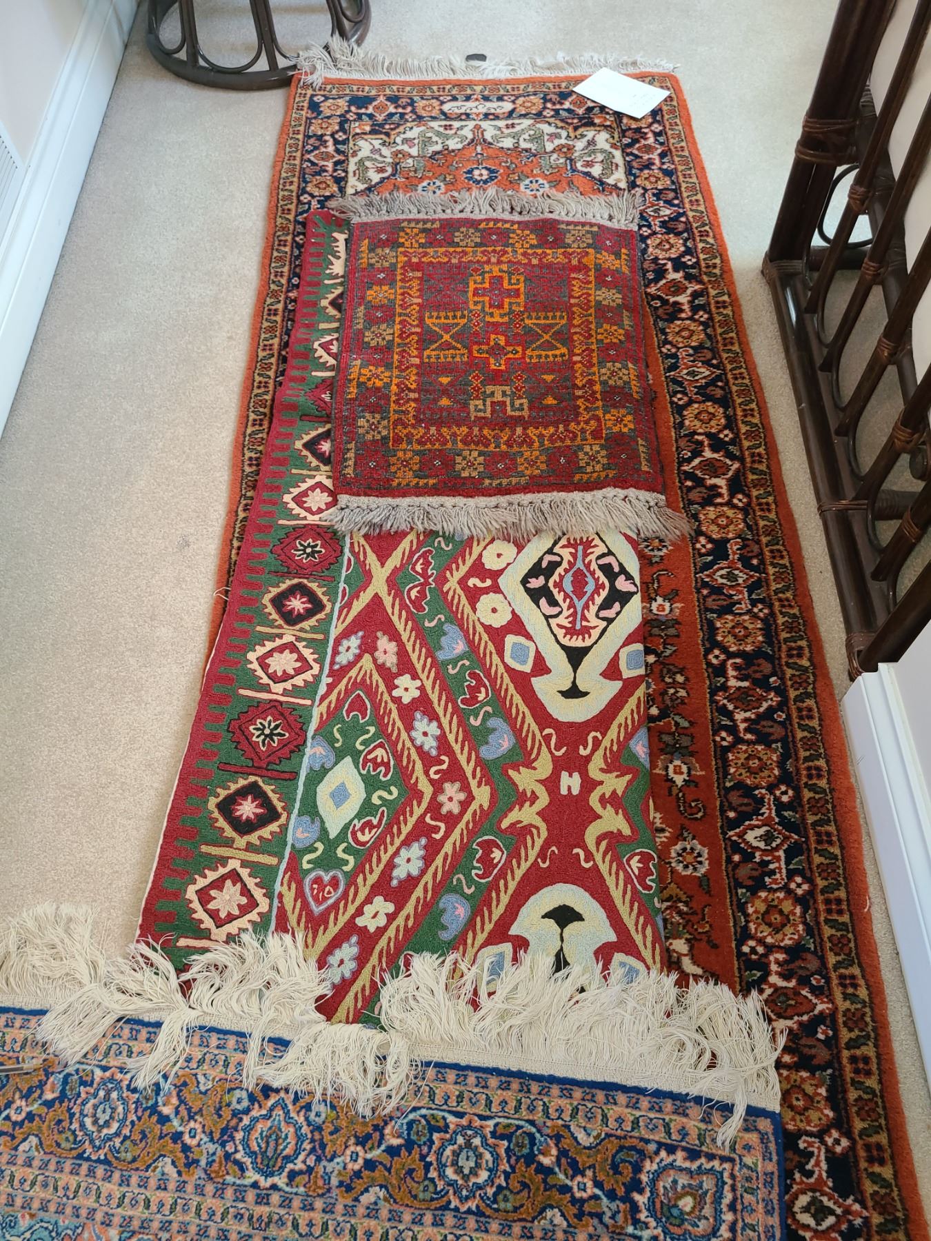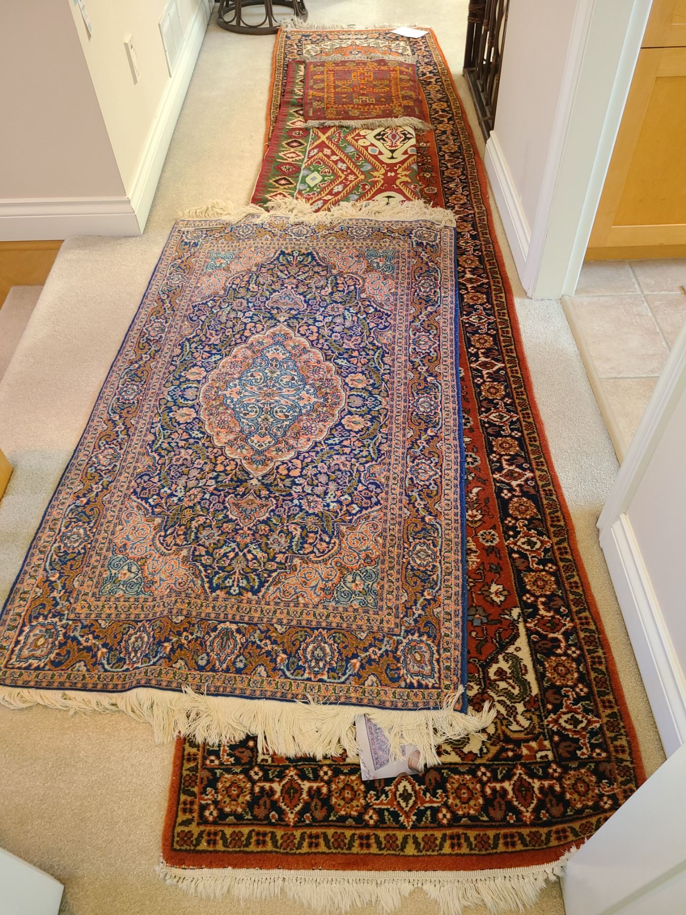 Small rugs largest 11 1/2 x 2 1/2 ft. runner style. Pickup 9 am.