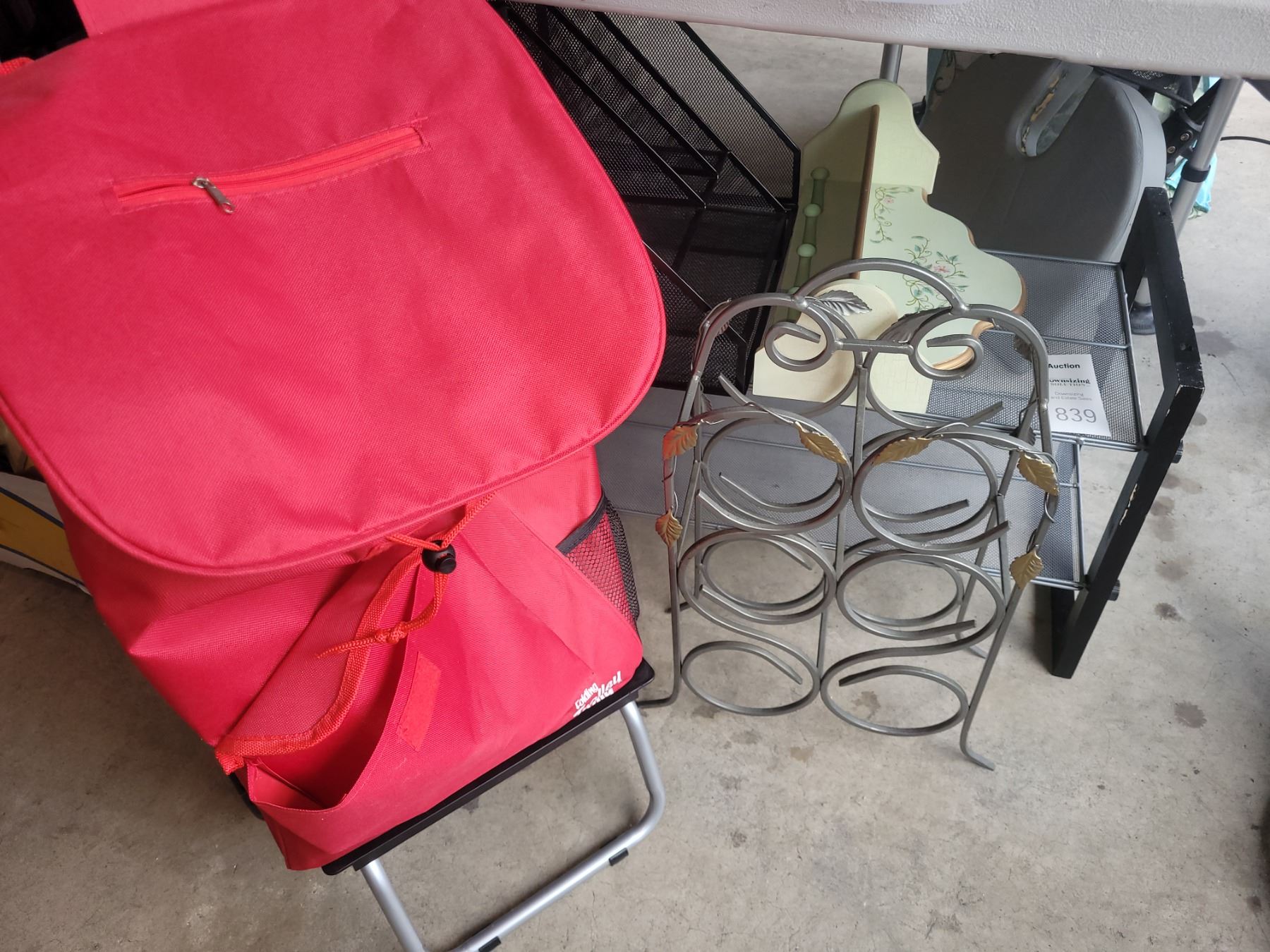 Cart, wine rack, shelves & shopping trolly. pickup 9am